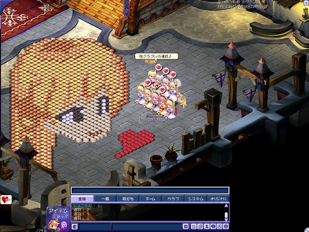 こんな感じで、夢にてクラブLVUPしました♪ さて、大きく話戻しますけど、 朝は雛で30分ほど狩りをしました。 その後、長時間用事あったので、夕方まで帰って来れず。 家に帰って臨時クライベについて色々相談してました。 そして、臨時クライベ「テチのおうちLV15を皆で迎えよう(仮名)」をしました♪ で、蝶々の子が精一杯のIAを飾ってあるクラブアジトにて記念撮影♪ 本当、充実した日を過ごす事が出来ました。 皆、本当にありがとう… これからも、よろしくおねがいします。 そして、テチのおうちのクラメンみんな、大好きです。 LV変動 なし 出したレア ゴミレアが数点 本日の体調 心が充実してるせいか、かなり調子がいいかも。 あ、一応回避ルシアンの動画アドレス貼り付けて置きます (と言っても、もう見られた方も居ますけど。) http://www.nicovideo.jp/watch/sm5274477 序盤から回避キャラ全般に言えますけど 「至弱より始まり、至強を倒すに至る」事が最大のコンセプトです。